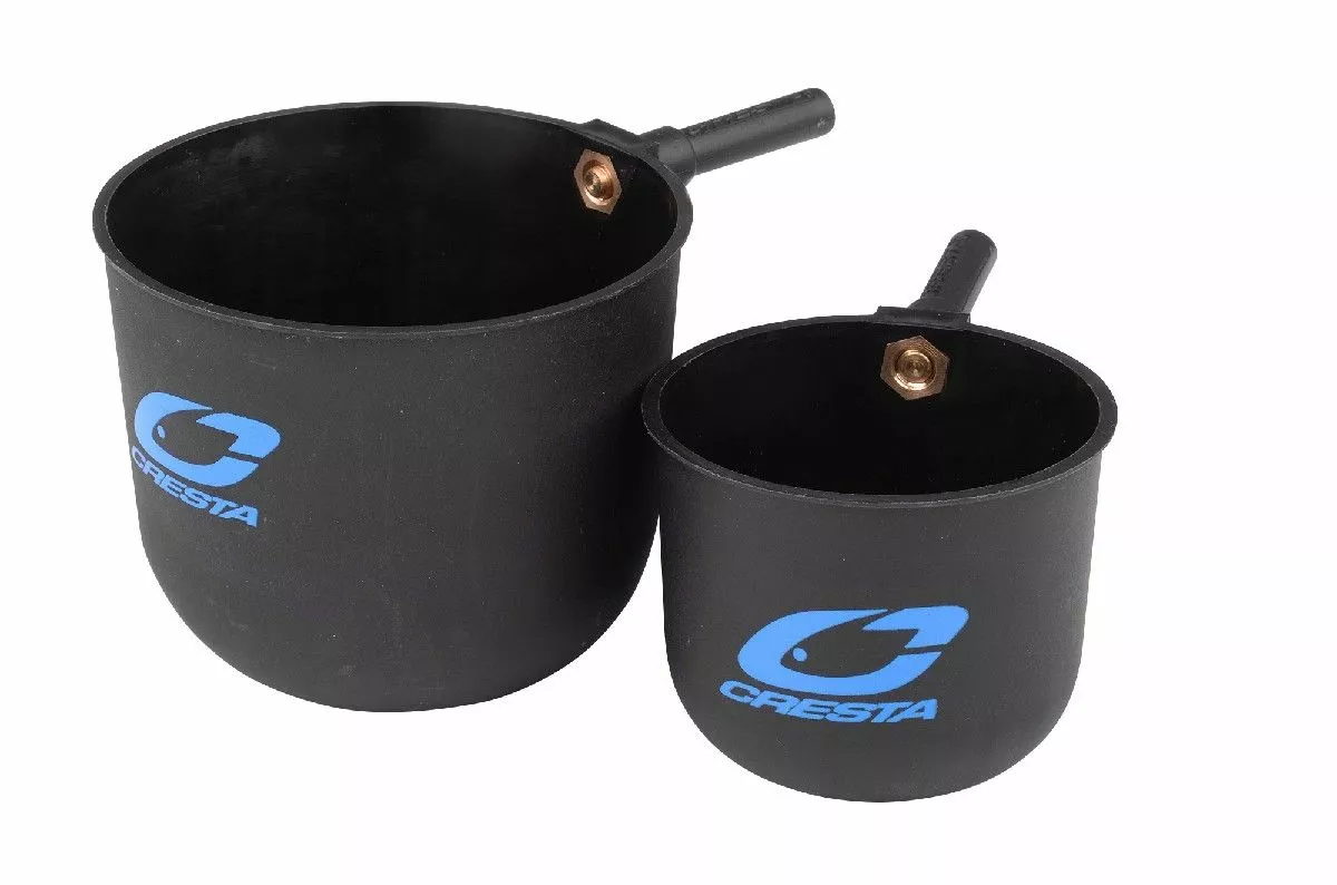 Deze Cupping Pots voldoen aan de wensen van de moderne vaste hengelvisser. Dankzij de 2 verschillende binnendiameters (4.5mm en 5.1mm) van de bevestigingsdelen, past deze set op praktisch iedere cupset. Met de opschroefbare pots (150 en 300ml) kan de gewenste hoeveelheid voer en aas uiterst precies op de stek gebracht worden.