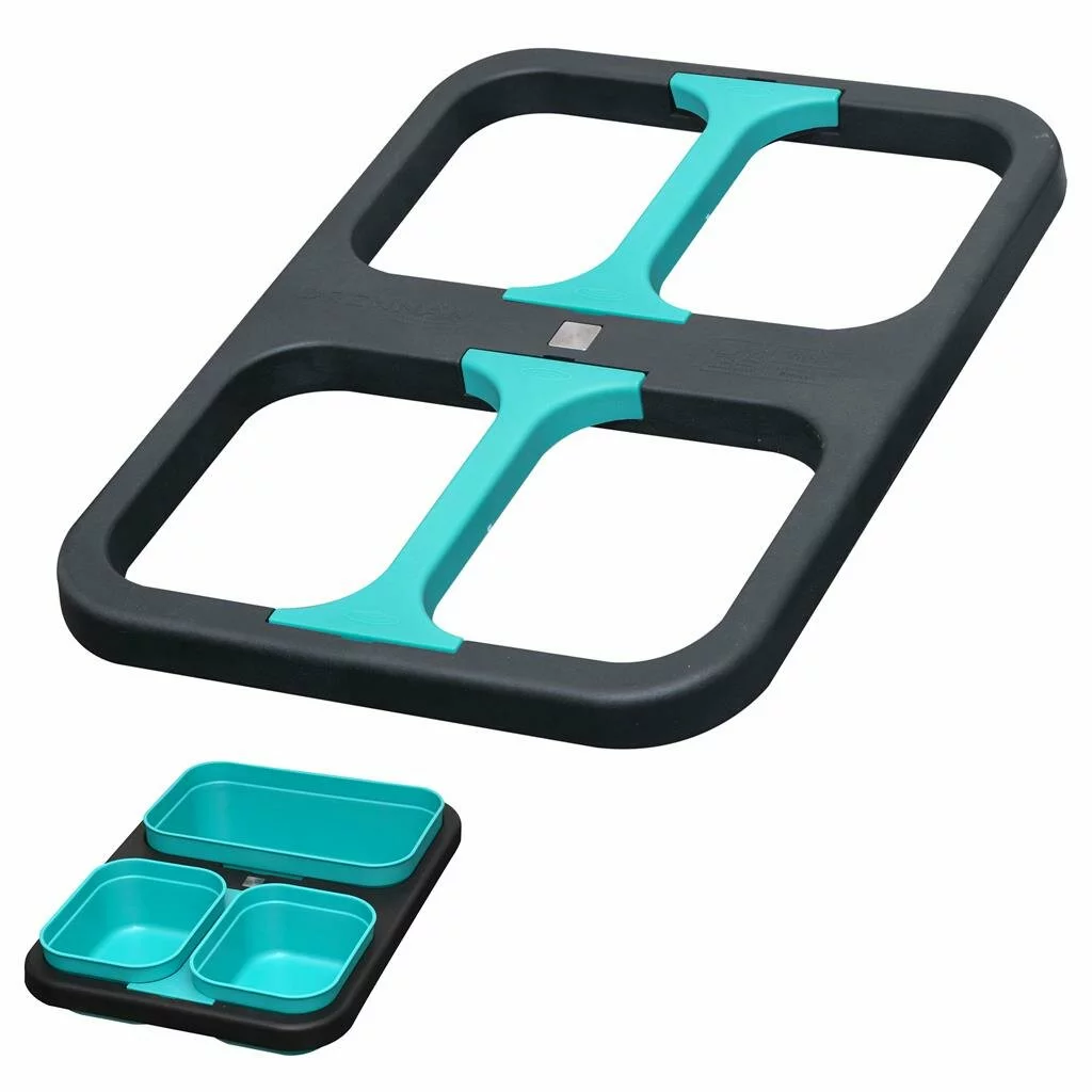 Deze twee slimme nieuwe Bait Waiters stellen de visser in staat om een ruimte van 3 pint te veranderen in twee vakken van 1 pint. Dit doe je door de Aqua kleurige verdelers toe te voegen of te verwijderen die gemakkelijk in en uit klikken om de opstelling te veranderen. De range bestaat uit een kleine en grote Bait Waiter en is speciaal ontworpen voor de nieuwe DMS Bait Boxes.