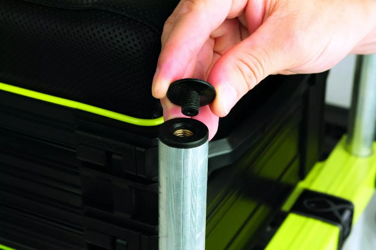 De Matrix F25 Seatbox Mk2 system heeft een lichtgewicht aluminium H-frame dat zeer stevig is. De Matrix zitkist heeft een lime frame en zwarte voetplaat voor mooi contrast. Ze hebben de Matrix F25 Seatbox Mk2 system voorzien van nieuw anti-kras bevestigingsmechanisme voor de voetplaat. De F25 zitkist wordt geleverd met 6x 25mm ronde, telescopische poten. Bij Matrix hebben ze ook goed nagedacht over welke poten ze zouden gebruiken. Hiervoor hebben ze roterende moddervoeten gepakt voor extra stabiliteit. Alle poten zijn voorzien van een interne schroefdraad. De bijgeleverde Swivel Seat & Base is de ideale draaibare zitting met rugleuning wat perfect van pas komt voor het feedervissen. De Matrix F25 Seatbox Mk2 system wordt geleverd met 1x Deep Drawer Unit en 1x Shallow Tray Unit.