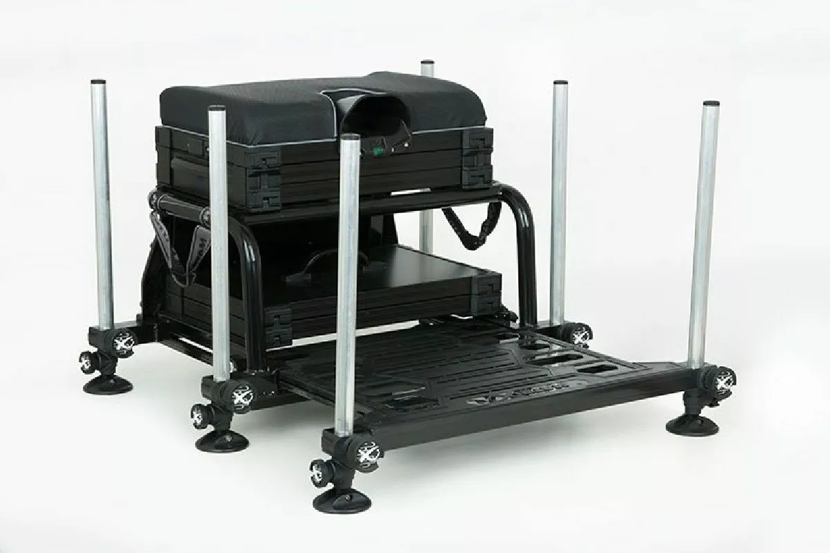 De Matrix S25 Superbox heeft telescopische poten met grote 25mm diameter poten voor ongelofelijke stabiliteit. De S25 Superbox is gemaakt van lichtgewicht aluminium frame. De draagriem die erbij geleverd wordt zorgt een makkelijk transport. De Matrix S36 Superbox is gebouwd met gebruik van de enorm populaire Matrix Drawer Units. Ook beschikt de Matrix Superbox over een grote opslagcapaciteit tussen de voetplaat en Drawer Units. De S25 Superbox heeft een stijlvolle achterplaat. De voetplaat is voor zien van anti/wrap zodat je beter grip hebt. De Matrix S25 Superbox wordt geleverd met 1x Deep Drawer Unit, 1x single tray Unit en 1x Transport Lid. De zitkist is voorzien van grote zwenkbare modderpoten voor extra stabiliteit op oneffen grond. De integrale voetplaat schuift onder het chassis voor gemakkelijk transport. De gevoerde zitting heeft een ingebouwde waterpas en pole support voor het afsteunen van een vaste hengel. Deze viskist is verkrijgbaar in een lime edition en in een black edition.