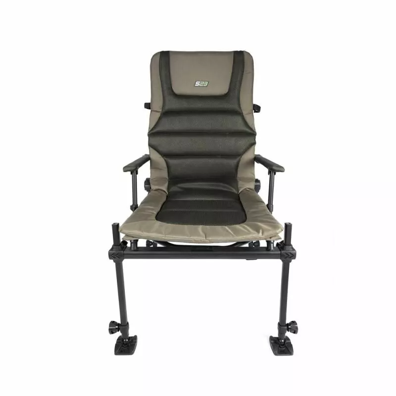 Het gepatenteerde verticale pootontwerp maakt nu gebruik van een afgeronde vierkante poot van 23 mm, waardoor de stoel eenvoudiger te gebruiken is dan ooit tevoren. S23 verbetert de stabiliteit en het verstelsysteem van de poten, terwijl de stoel ook veel gemakkelijker te gebruiken is met stoelaccessoires. De zitting is gemaakt van de hoogste kwaliteit lichtgewicht materialen, wat zorgt voor een verbeterd ademend vermogen en comfort.