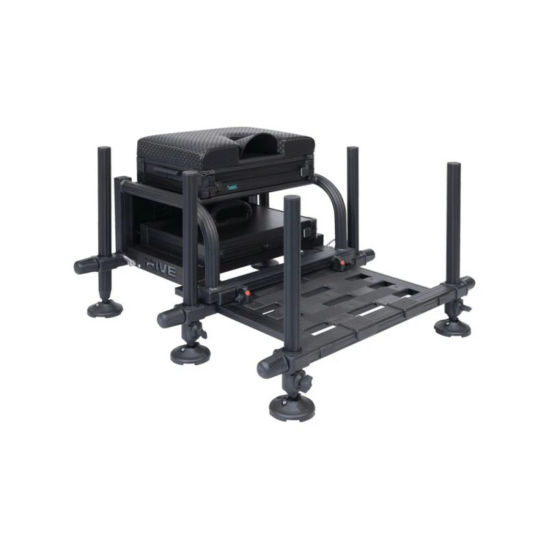 De Rive ST8 2.0 Full Black heeft 36 mm dikke poten. Deze super mooie zitkist heeft zwart geanodiseerde trays, voetplateau en poten. De “Dream” zitting is gemaakt van waterdicht en vuilwerend materiaal en is voorzien van een vast gemonteerde hengelsteun. Bij de nieuwe ST8 2.0 staat de uitneembare onder kist op een aluminium plateau waarop u ook tijdens het vissen nog allerhande spullen kunt wegleggen.