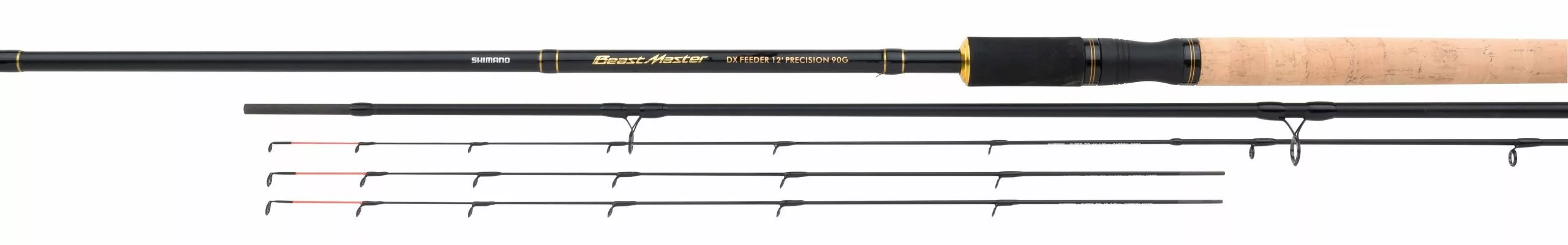 De Shimano Feeder Beastmaster DX is een mooi afgewerkte feederhengel met een zwarte blank en gouden details. Verder zorgt de HPC60 + Biofibre blank voor geweldige werp- en drileigenschappen. Daarnaast zijn de Shimano Hardlite geleideogen perfect afgewerkt en zeer sterk. Een ander kenmerk van deze hengel is het topkwaliteit kurken handdeel met EVA voorgrip. Als laatste wordt de hengel geleverd met 3 Shimano Supertips.